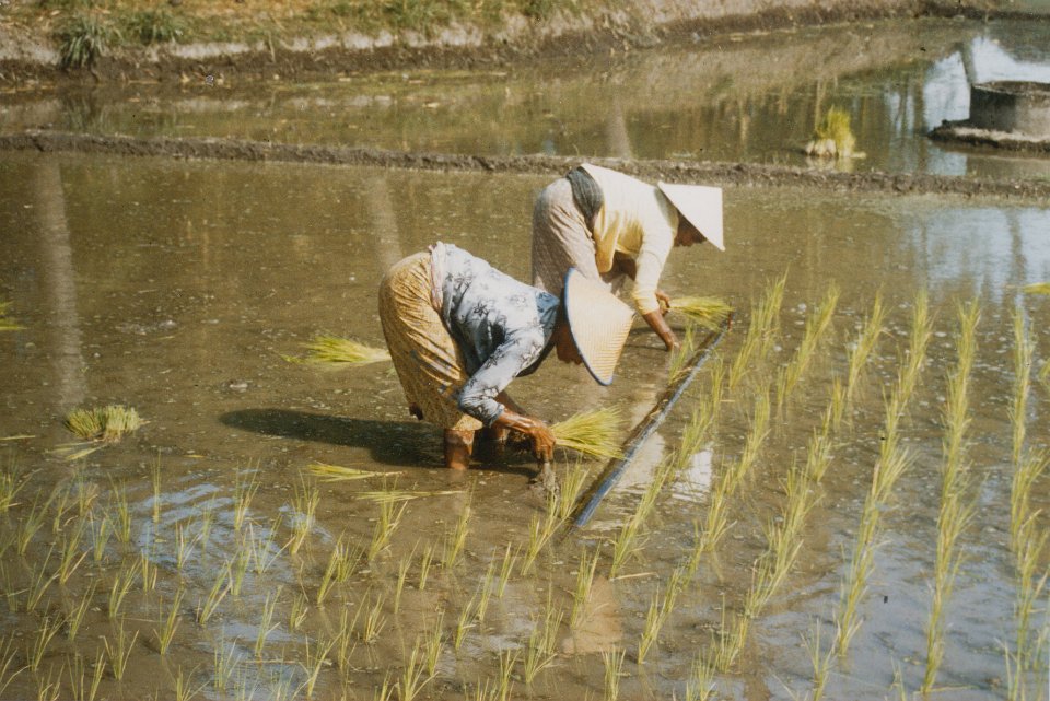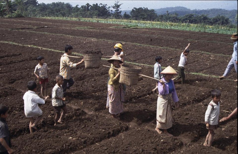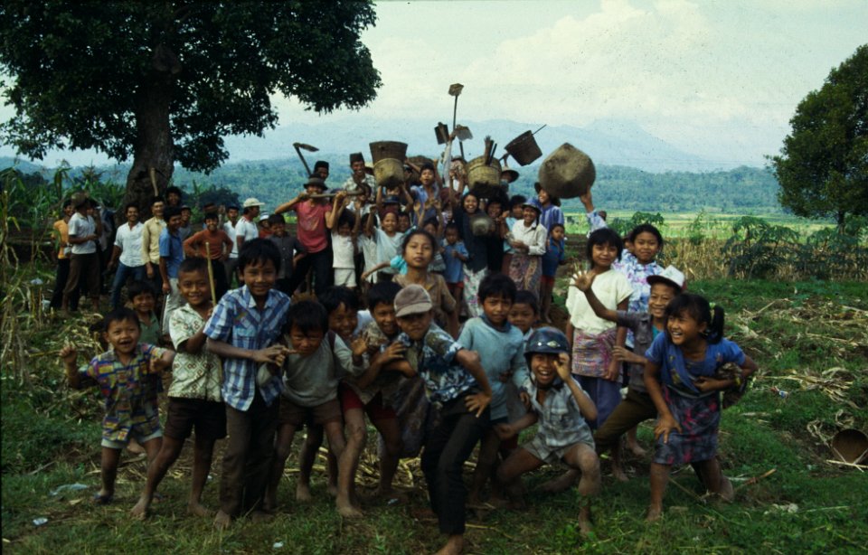 3 Indonesie 1990 enthusiastic peasants, rural laborers, Indonesia, welcoming the photographer near Semarang |