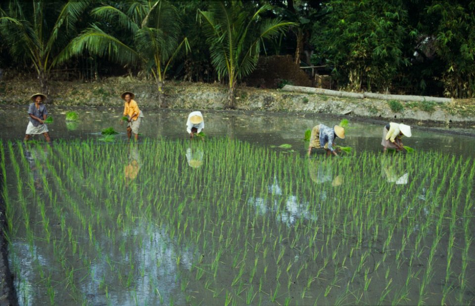 3 Indonesie 1990 enthusiastic peasants, rural laborers, Indonesia, welcoming the photographer near Semarang |