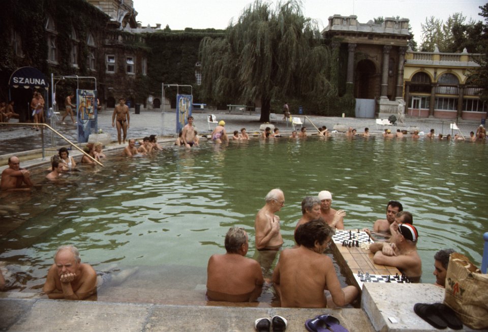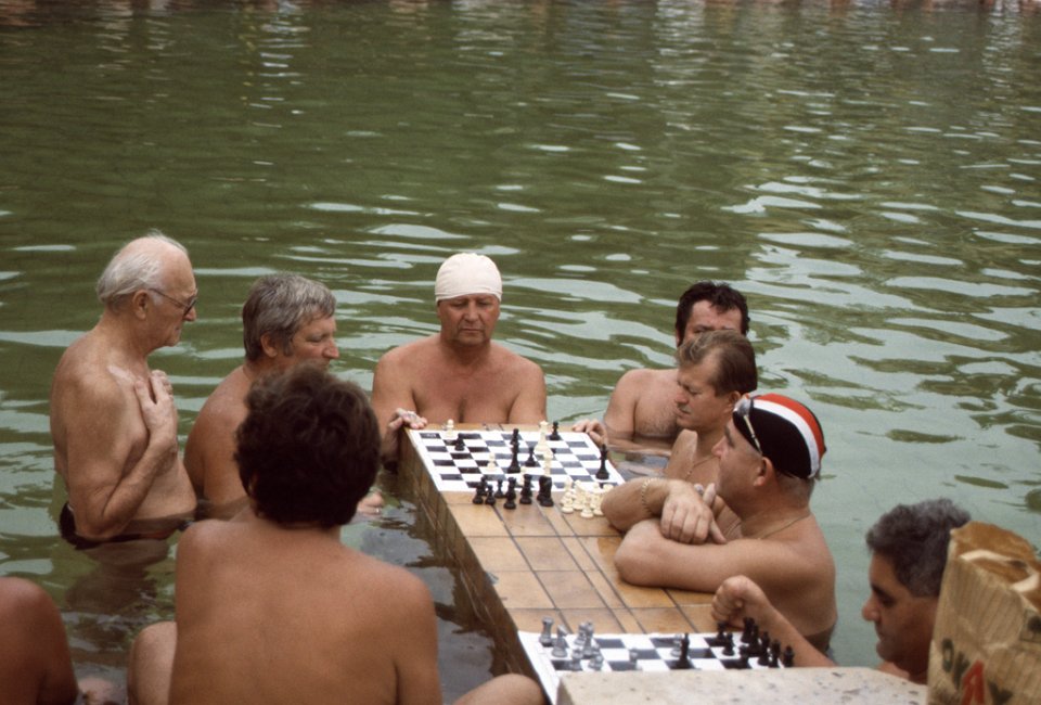 15 Hongarije 1992 playing chess, Széchenyi thermal bath |