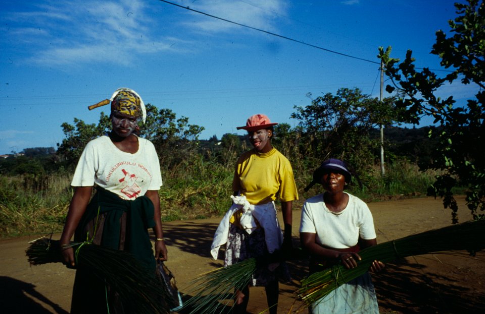Harvesting in Natal. Women with sickle on the head.