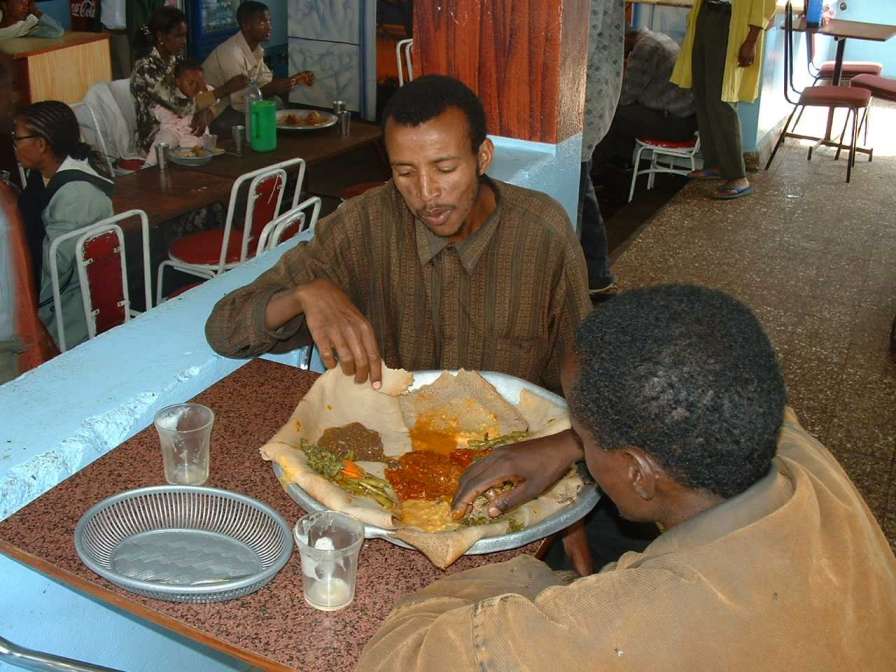 Ethiopian food, injera eating for breakfast lunch and dinner