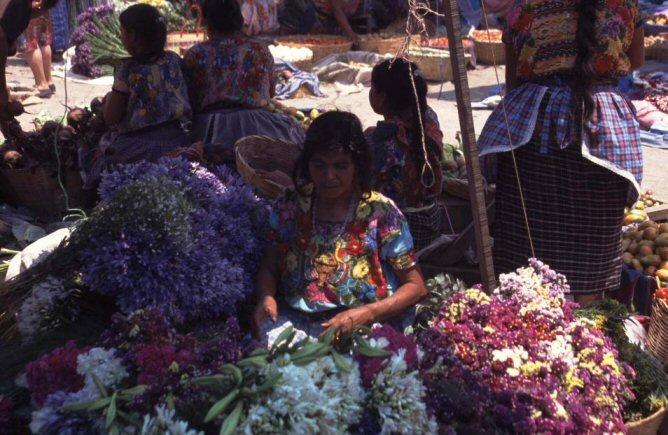 Guatemala, flower salewoman in Chichicastenango