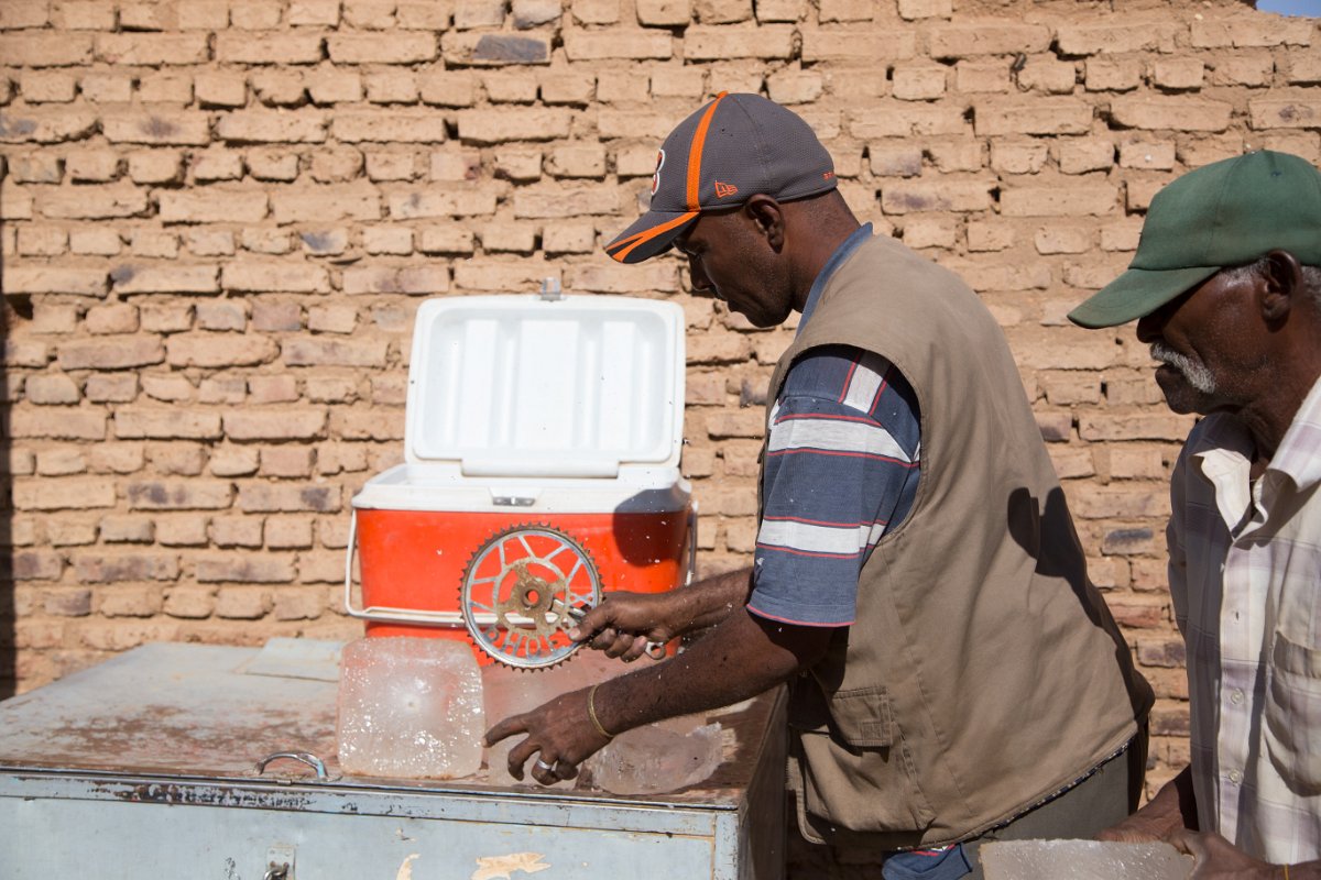 onze chaufeur hakt wat ijs