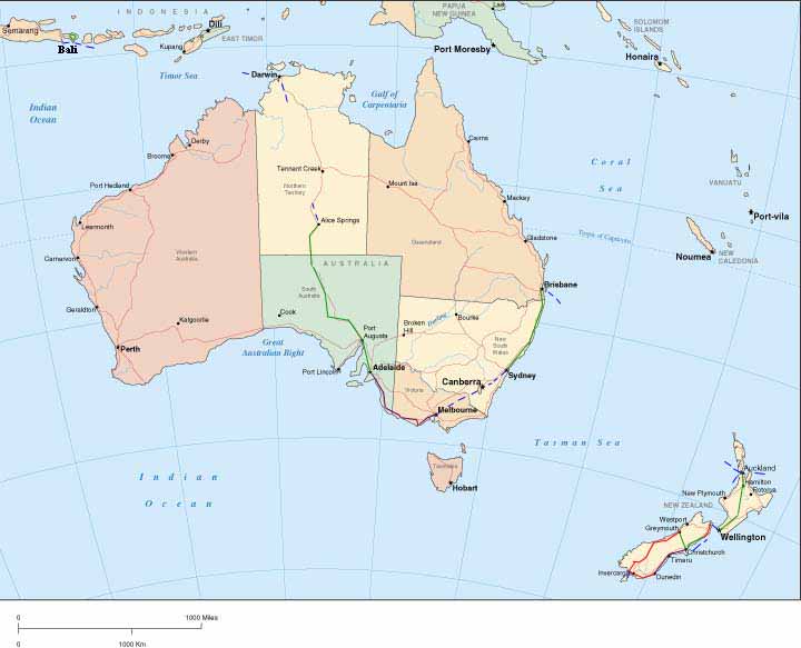 Vanuit Auckland (NZ) - Brisbane (Australie) Over land via Sydney, Melbourne, Adelaide, Alice Springs naar Darwin.