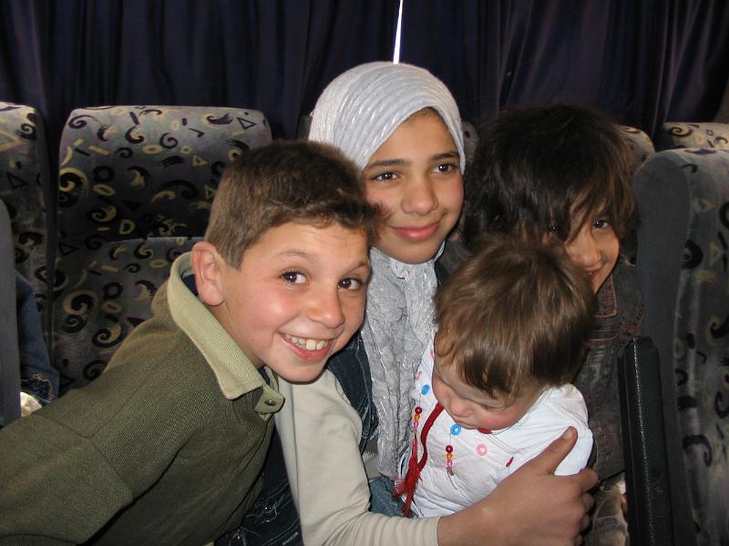 syrische kinderen in de bus naar Palmyra
